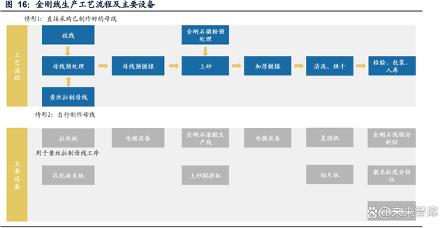國內生產金剛線的頭部企業包括美暢股份、高測股份、恒星科技、岱勒新材、三超新 材、東尼電子等,總體格局較為集中。金剛線細線化進展較快,主要企業目前已實現 量產的金剛線母線主流直徑范圍在36~40um,線徑35um以下的產品仍在小批量試驗 或儲備當中。