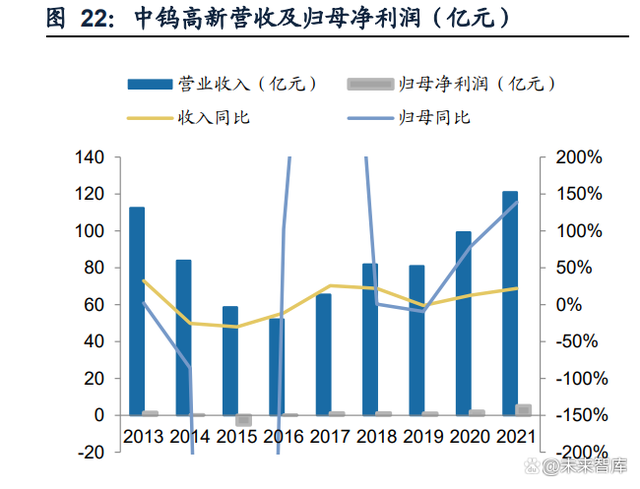 2021年公司實現營業收入318.52億元,同比+67.96%;實現歸母凈利潤11.81 億元, 同比+92.24%。其中,鎢鉬等有色金屬業務實現營收109.58 億元,同比+45.41%, 實現利潤總額14億元,同比+74.57%。21年毛利率16.24%,同比-2.09%;凈利率 3.71%,同比+0.47%。鎢鉬等有色金屬業務的毛利率較高,21年為26.76%。
